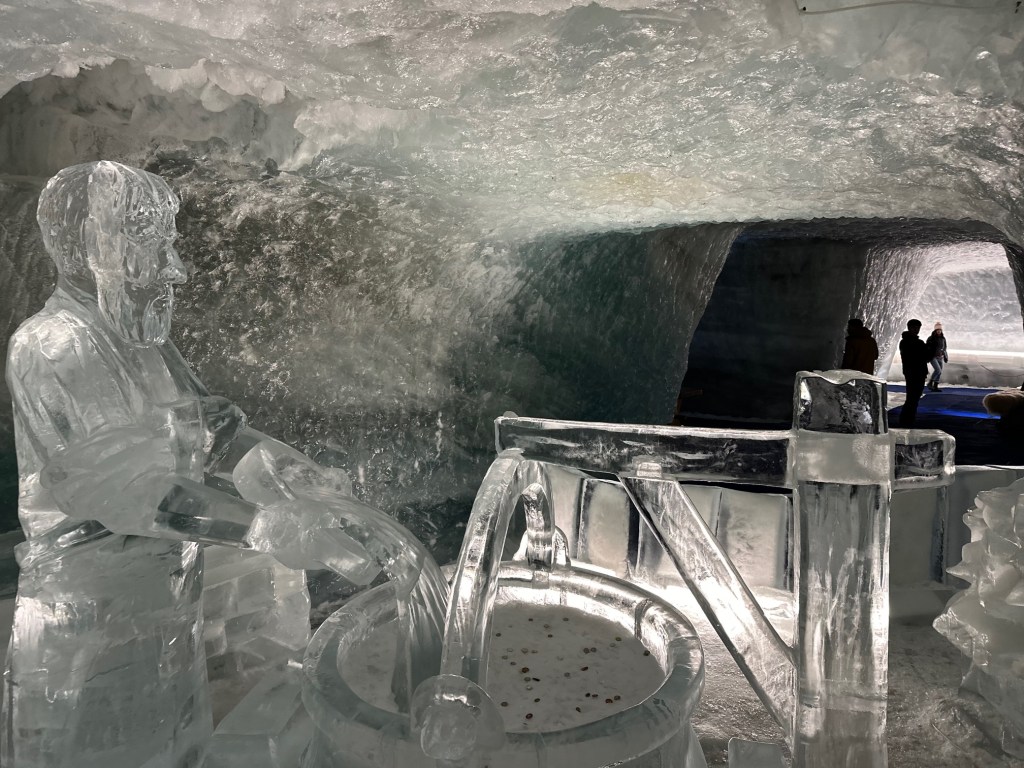 Zermatt Glacier Palace. Walking through ice tunnels and past ice sculptures at the top of the mountain was such a cool experience. The Matterhorn is one of the most gorgeous ski views in all of Europe, but Glacier Palace was a really cool, unique experience we haven’t seen anywhere else.